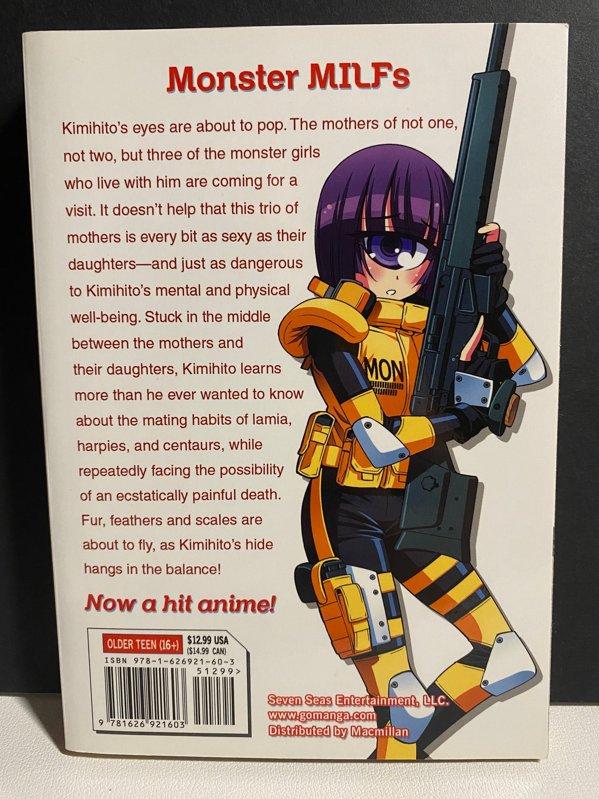 Kimihito’s eyes are about to pop. The mothers of not one, not two, but three of the monster girls who live with him are coming for a visit. It doesn’t help that this trio of mothers is every bit as sexy as their daughters—and just as dangerous to Kimihito’s mental and physical well-being. Stuck in the middle between the mothers and their daughters, Kimihito learns more than he ever wanted to know about the mating habits of lamia, harpies, and centaurs, while repeatedly facing the possibility of an ecstatically painful death. Fur, feathers and scales are about to fly, as Kimihito’s hide hangs in the balance!
